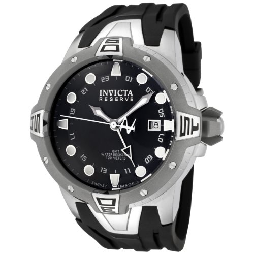 Invicta Men's 0651 Reserve Collection Sea Excursion GMT Black Dial Black Polyurethane Watch